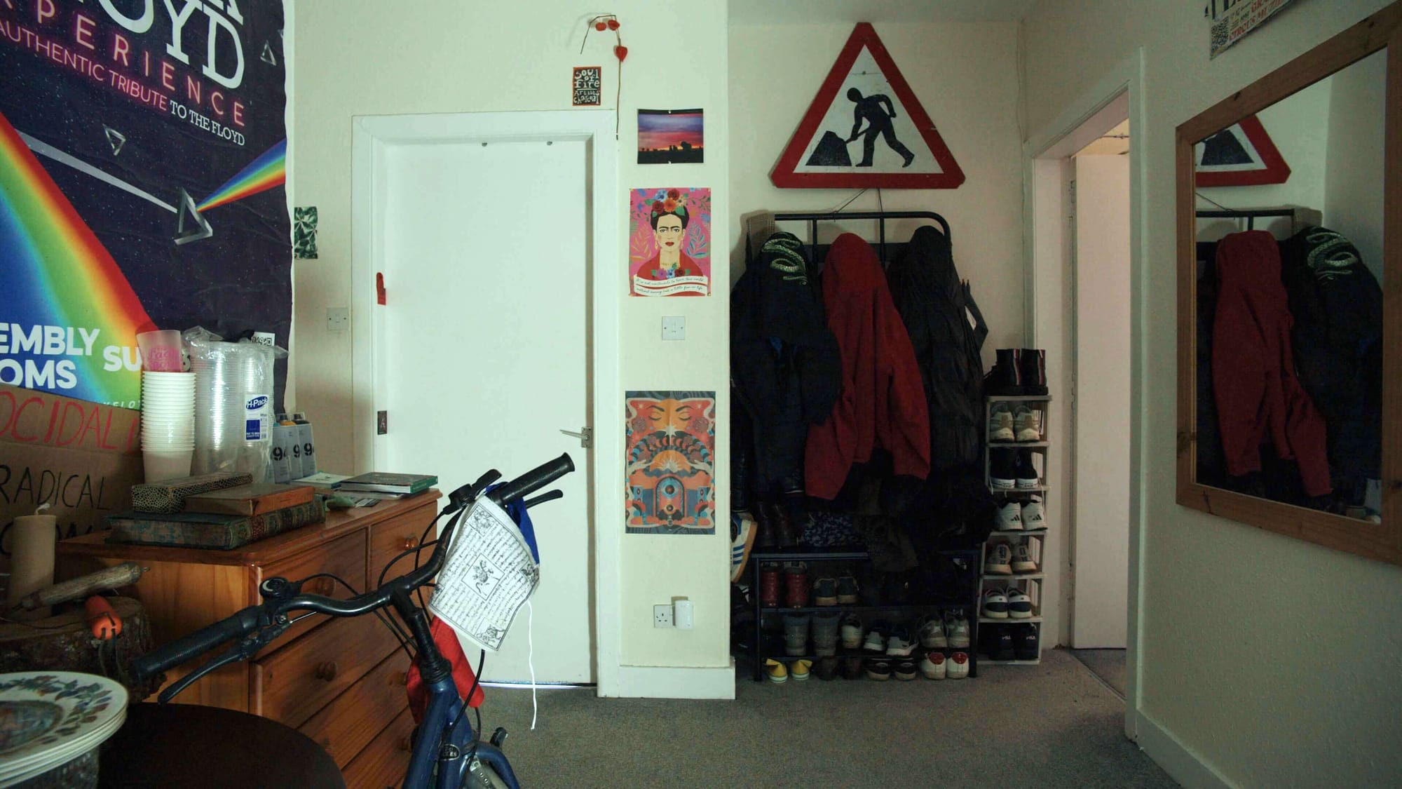 A lot of posters are literally ripped off walls. The Pink Floyd poster is one of them — walking past a bar, taking it home. It feels a bit street-like, like party places and pubs.